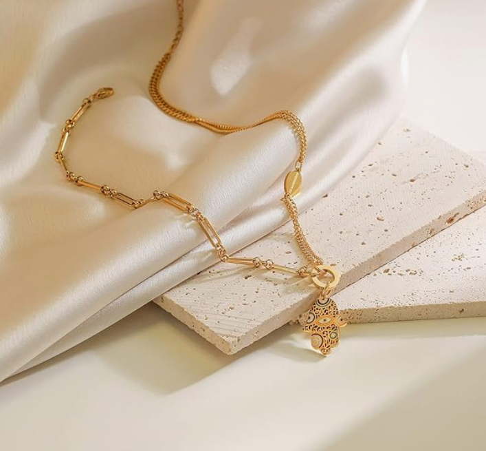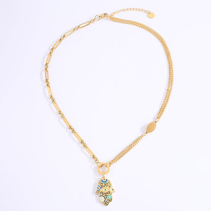 Artistic Hamsa Necklace with Dual Chain Design-0