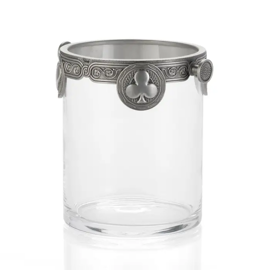 To ice or not to ice? Keep the option close at hand in a bucket crowned with sculpted pewter card suits.