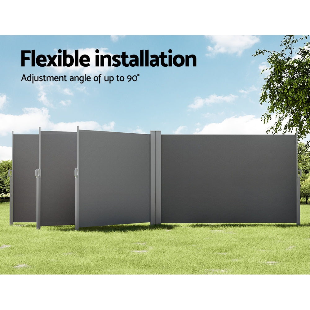 Made from UV-resistant and tear-resistant polyester with robust steel frame, our Instahut Retractable Double-sided Awning is perfect for outdoor application. It is excellent at blocking prevailing wind and low-lying sun, as well as providing addit...
