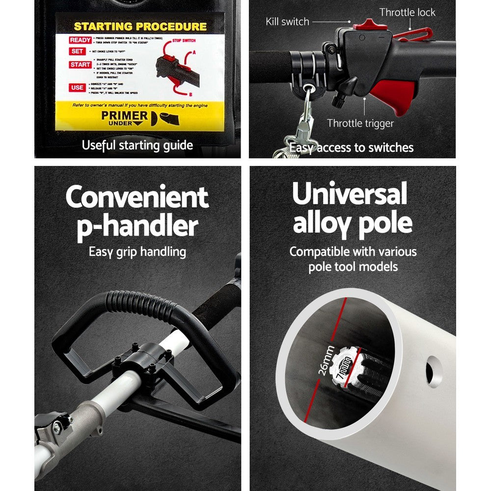 The GIANTZ Pro-series Chainsaw is the answer for people who are looking for doing serious cutting and bring it to the next level. Featuring a powerful 40cc, 4-stroke full crank engine for smoother starting and running, the chainsaw trims and cuts every gardening challenge in its path with minimum hassle. Efficient and lightweight in design and equipped with a comfortable D-handle, the chainsaw allows quick-connect coupling for easy change of attachments. In fact, up to seven attachments for every conceivable cutting job. Better still, the chainsaw also comes with three extra thick alloy extension poles which allows you to reach for those hard-to-get branches. Not least, the cutting equipment also features fine quality construction and cutting-edge technology to ensure the chainsaw remains reliable, durable and sharp consistently.