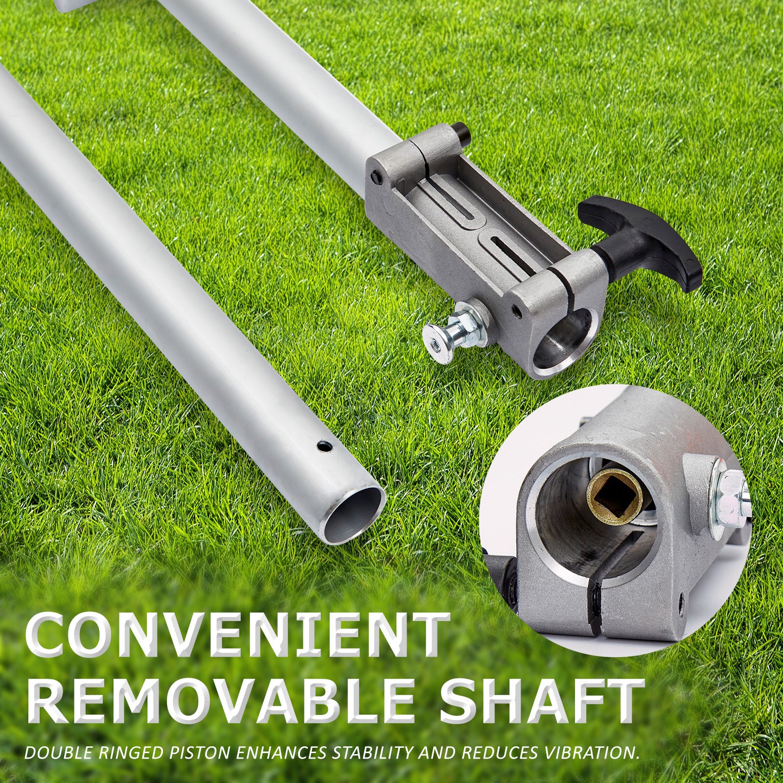 This 43cc Brush Cutter is an extremely lightweight and professional cutter with plenty of power. The Ergonomically designed Asymmetrical double handle create unsurpassed balance, absolute safety and manoeuvrability. Powerful engine with rapid acceleration brush cutter for forestry business. Utilising premium Commercial Alloy, features a commercial grade quick connect couplings equipped with dual ball-bearing floating centres. Correctly Sized at 182cm Long, genuine commercial fastening ensures superior stability - essential for safe handling. It now comes with 5 different attachement heads to suit different tasks.