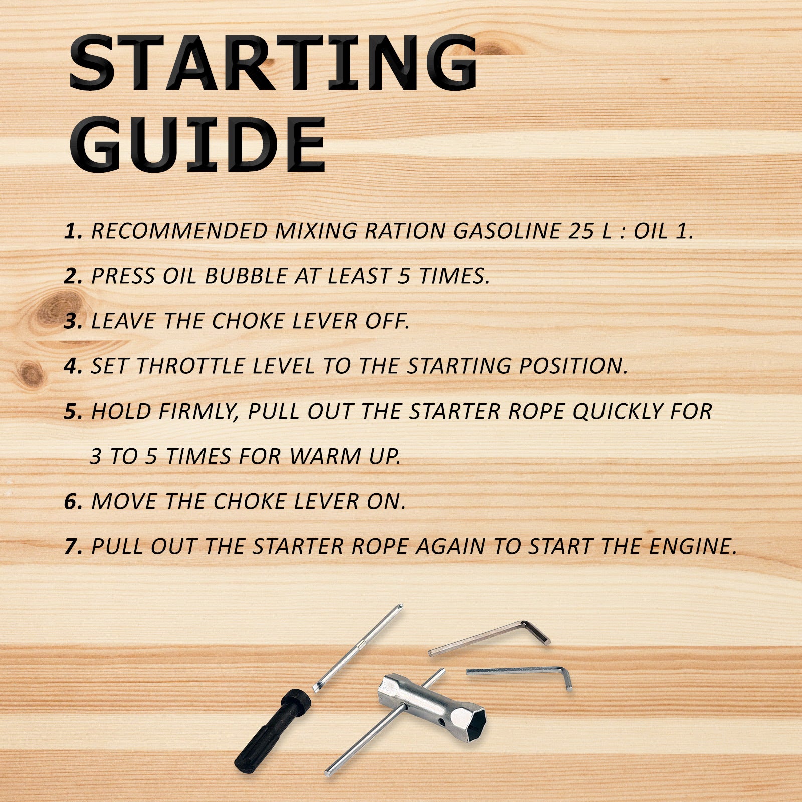 Fuel Mixture Ratio: 25/1 (Gasoline 25: Two-Cycle Oil 1)