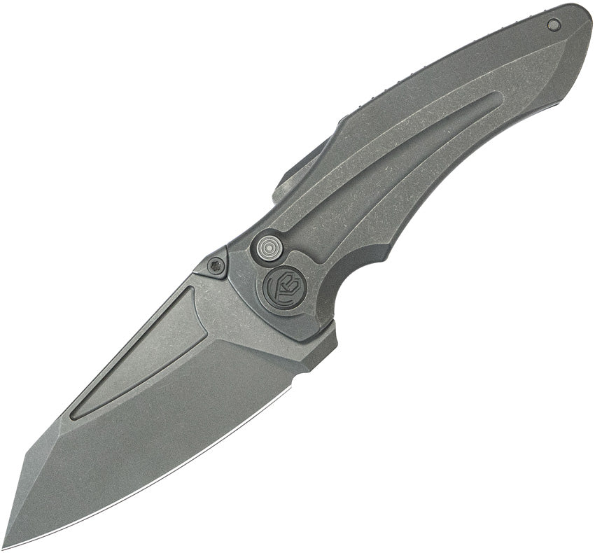A black folding knife with a carbon fiber handle and a titanium back handle, featuring a black stonewash finish. The knife is partially open, displaying the blade and the handle details.