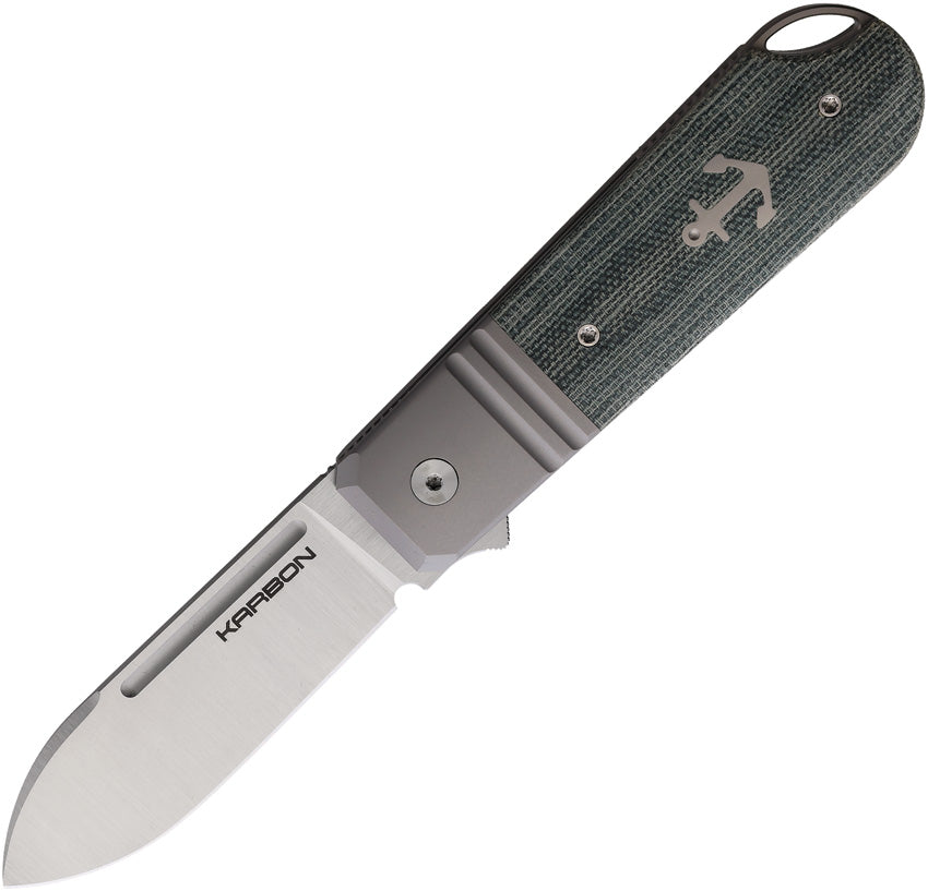 A fixed blade hunting knife with a black canvas micarta handle and a satin finish steel blade, featuring a sub hilt design and an aluminum pommel.
