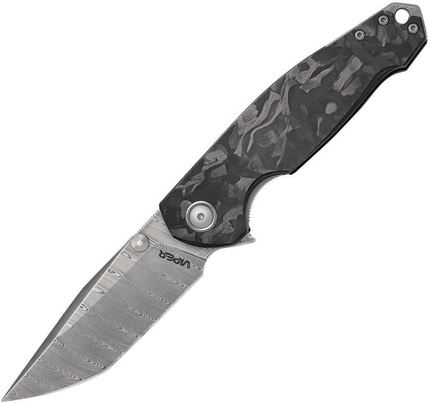 FOX RADIUS Finger Safe Lock Pocket Knife. Features a 3-inch black finish Bohler M390 stainless steel blade and Copper Shred carbon fiber handle.