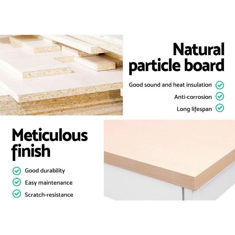 Artiss Metal Desk with Drawer - White with Oak Top The exceptionally thick particle board with melamine veneer wooden table top gives not only a smooth feel but good durability and easy maintenance. Two storage drawers with concealed handles prov...