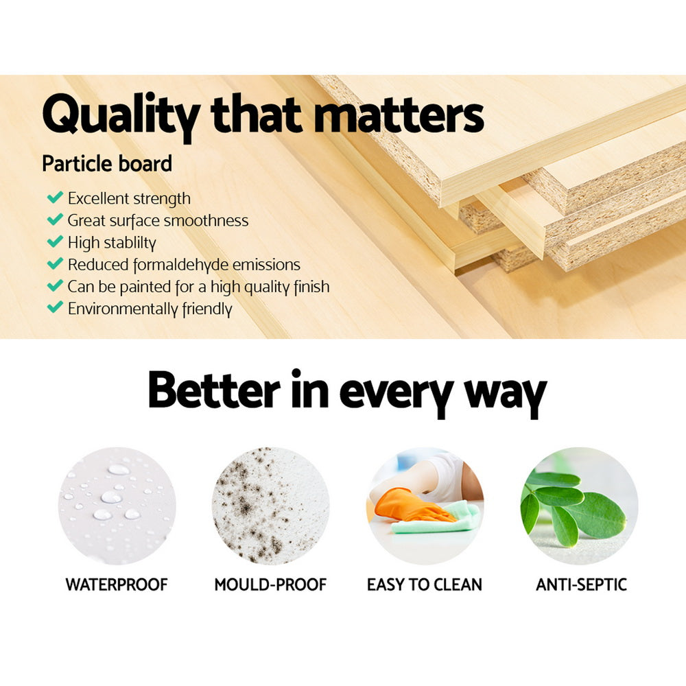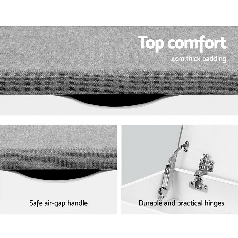 Get yourself a shoe cabinet with an aesthetic difference. Our Artiss Shoe Cabinet Bench blends two functions into one elegant piece. Made of eco-friendly particle board, our shoe cabinet bench has ample space to store up to nine pairs of footwear. Dress shoes, sneakers, boots, heels and sandals are all welcomed to own their spot in the two open shelves and side compartment. There is also a closed storage compartment hidden under the seat, with a cut-out handle for easy opening. In addition to shoe storage, the shoe cabinet bench also offers a soft and comfortable rest with its 4cm thick cushioned seat. Best of all, its thoughtful design means that you can place it in your hallway or entrance for a neat and tidy look that blends seamlessly with your home decor. So remove the clutter and get organised with our shoe cabinet bench. We are sure it will feet right in with your discerning taste for all things stylish and chic.