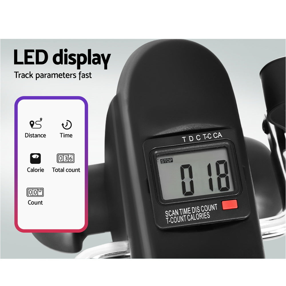 Be ready to exercise any time with the Everfit Pedal Exercise Bike. The machine is lightweight and portable, meaning you can use it anywhere from your couch, home gym, living room, or on the go. Engage both your upper and lower body muscles with different exercises for an even workout. Comfortable pedal straps on top of wide foot pedals will keep your feet in place, and adjustable resistance levels keep you performing at your peak. A sturdy frame and non-slip feet keep you and the machine firmly in place, and the quiet load bearing means you can exercise silently without disruption. The clear multi-function LED display shows several exercise parameters such as time, distance, speed and total calorie count. Best of all, the machine comes fully assembled and ready to perform. Get moving from anywhere with a Pedal Exercise Bike from Everfit.