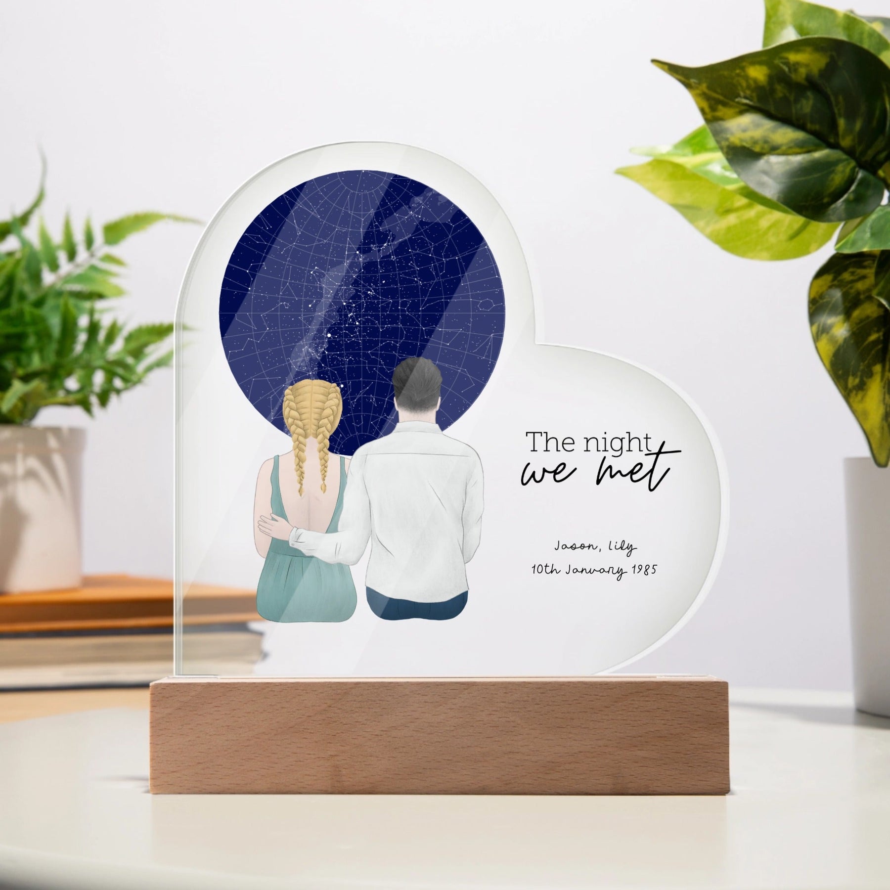 Read moreCreate a memorable welcome to any room with our Printed Heart Acrylic Plaque. This beautiful sign is handcrafted using premium acrylic and a vibrantly printed design. Display your beautiful plaque in your own home or give it as a gift to make a statement. This would make an ideal gift for your beloved partner, family members, or dear friends on special occasions like anniversaries, birthdays, or any event where you want to express your love and appreciation in an unforgettable way. Your plaque will be crafted from premium acrylic with a professionally printed design for a polished look. It comes with a stylish wooden LED base, and you can choose between a USB plug-in option OR a cordless battery-operated option (requires 2 AAA batteries, not included). Both LED bases feature 7 vibrant colors, allowing the user to customize the lighting with various color changes and dynamic cycles. Product specifications: Premium acrylic Size: 7" (17.8cm) height x 5.9" (149.86mm) width Acrylic Depth: 0.1" (5mm) Sharp, detailed printed design Corded LED Base uses an attached controller to customize light options Battery Powered LED Base uses a single button to customize light options with an On / Off switch located on the bottom of base Each order is lovingly packaged and ready to be cherished for a lifetime!