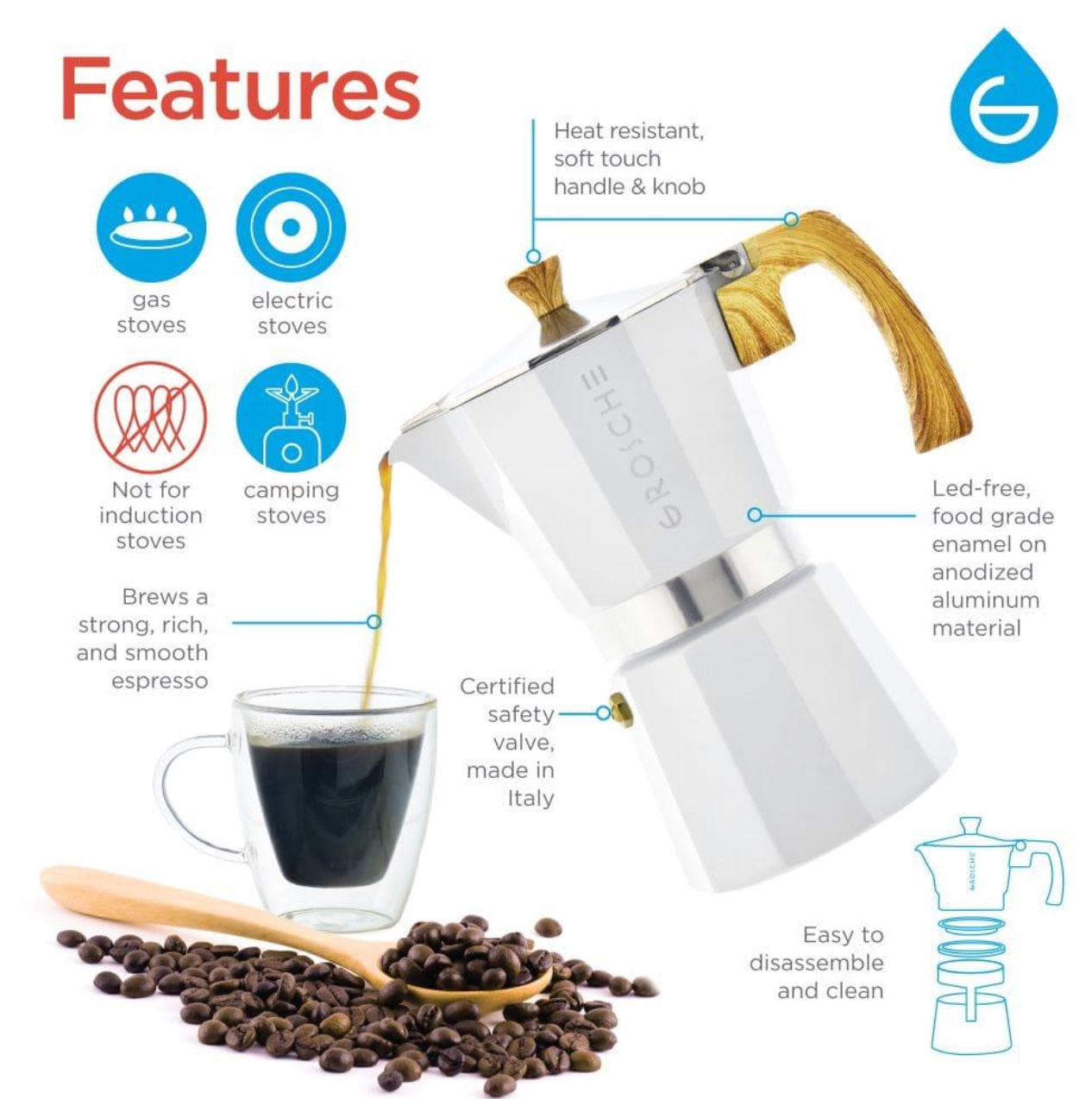 Grosche Stovetop Espresso Coffee Maker: Milano - White, 6 cup