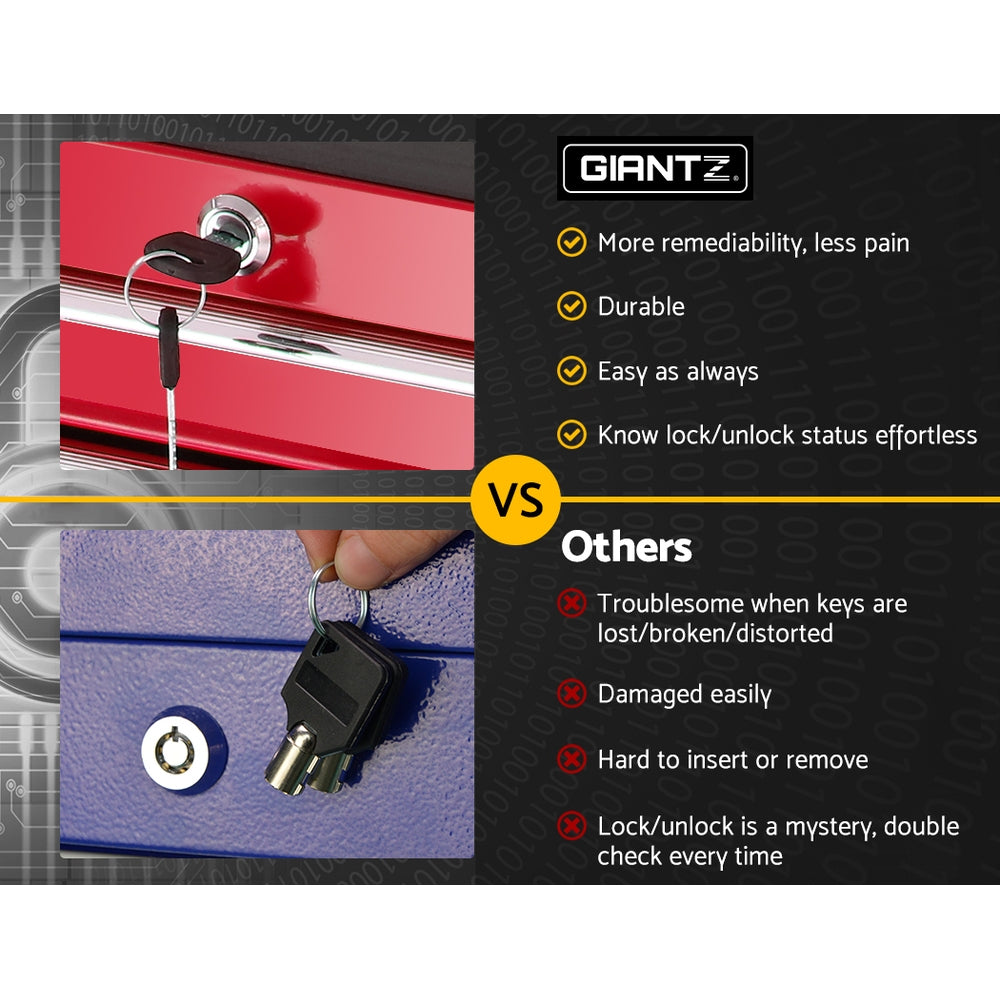 Our high quality and well-made tool box will keep all your tools close by and organised. With powder coating finish, this tool box is built to last long in the garage. Premium designs such as various depth drawers and sharp edge protection to provide more convenience for your daily use.