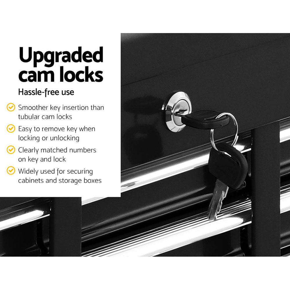Read moreMade from thick high-tensile powder-coated steel, our Giantz Tool Chest is built to keep your precious tools in their proper place with drawers that are specifically designed to cater to various tool sizes with its spacious and multi-sized ten drawers. From top to bottom, each drawer slides in and out effortlessly on quality ball bearings incorporated into the metal drawer runners. Each drawer is also lined to protect your tools and keep them from moving about. Not least, the tool chest is installed with upgraded cam locks for added security.