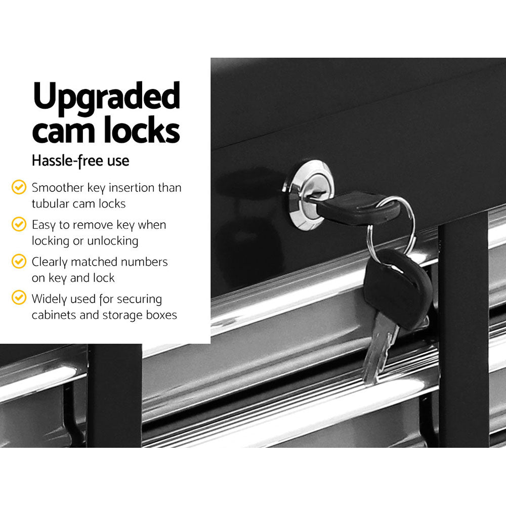 Made from thick high-tensile powder-coated steel, our Giantz Tool Chest is built to keep your precious tools in their proper place with drawers that are specifically designed to cater to various tool sizes with its spacious and multi-sized ten drawers. From top to bottom, each drawer slides in and out effortlessly on quality ball bearings incorporated into the metal drawer runners. Each drawer is also lined to protect your tools and keep them from moving about. Not least, the tool chest is installed with upgraded cam locks for added security.