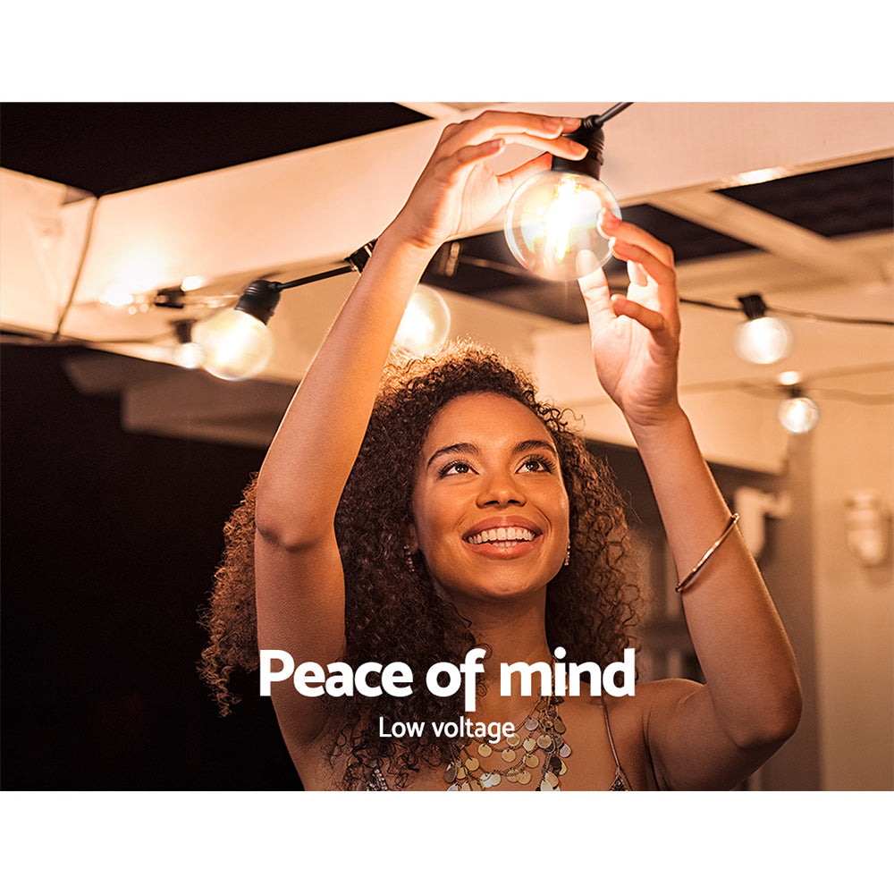 Read moreOur Jingle Jollys Festoon String Lights are great not only for wedding and birthday parties or special events, but also for creating a warm, inviting ambience with its bright and mellow glow. Suitable for both indoor and outdoor use, its IP44 rating means that it can be used in the rain and all weather conditions. Each bulb draws a very low voltage and is placed 90cm equally apart from each other throughout its 77m length for an even distribution of illumination and brightness. Not least, the each bulb has a 20,000 hours lifespan so that you can get to use the string lights for quite a while.