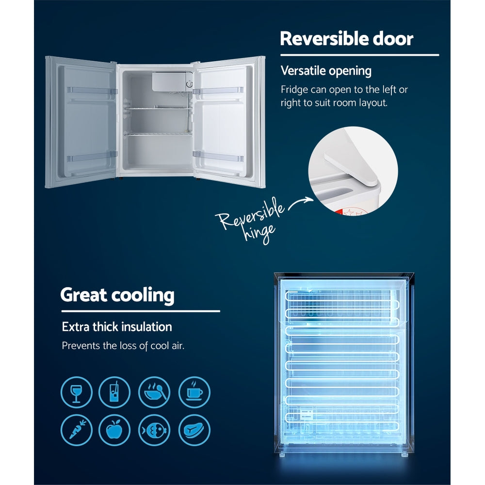 Suitable for your caravan, apartment, work kitchen or holiday house, this handy mini bar fridge is great for accommodating a variety of food and beverages with chill compartment and door compartment for storing drinks and sauces. Conveniently used...