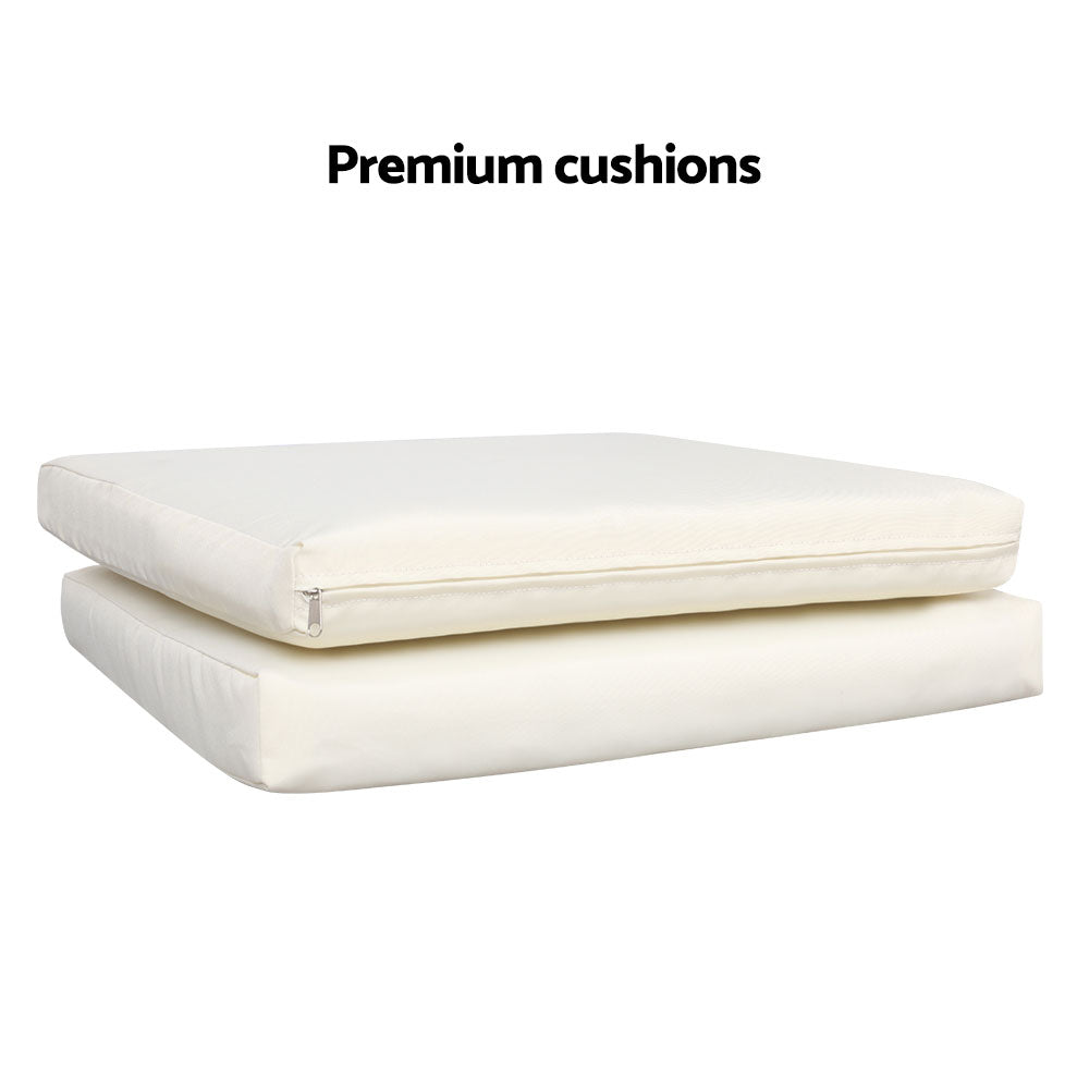 For seating comfort, the cushions comprise 5cm thick high density foam for ultra softness encased in washable and removable cushion covers. Not least, the accompanying table features a 5mm thick tempered glass top for a touch of class and sophistication.