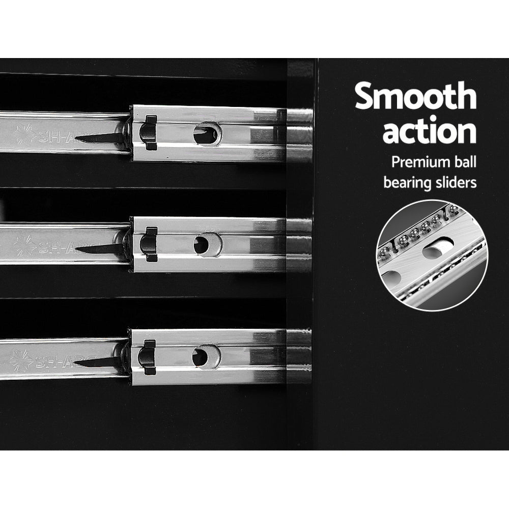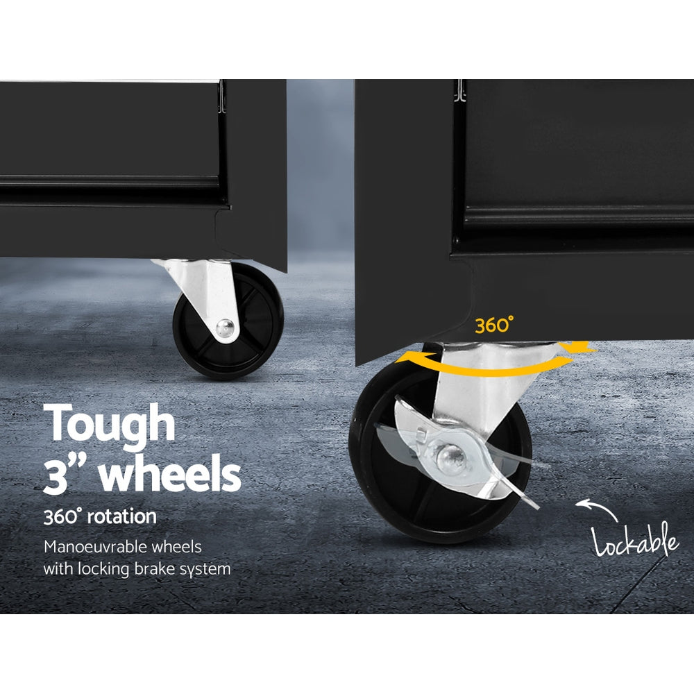 Read moreThis robust, multi-drawer Giantz Tool Trolley is an essential for any workshop. Crafted from durable steel, it features smooth ball-bearing slides for easy access and a secure lock system for safety. Its spacious design includes varying drawer sizes to accommodate tools of all shapes, complete with non-slip liners. The chest is also mounted on omni-directional castors with locakble front wheels, ensuring a smooth maneuverability and stable positioning. Sleek and functional, it's perfect for organizing and protecting your valuable tools.