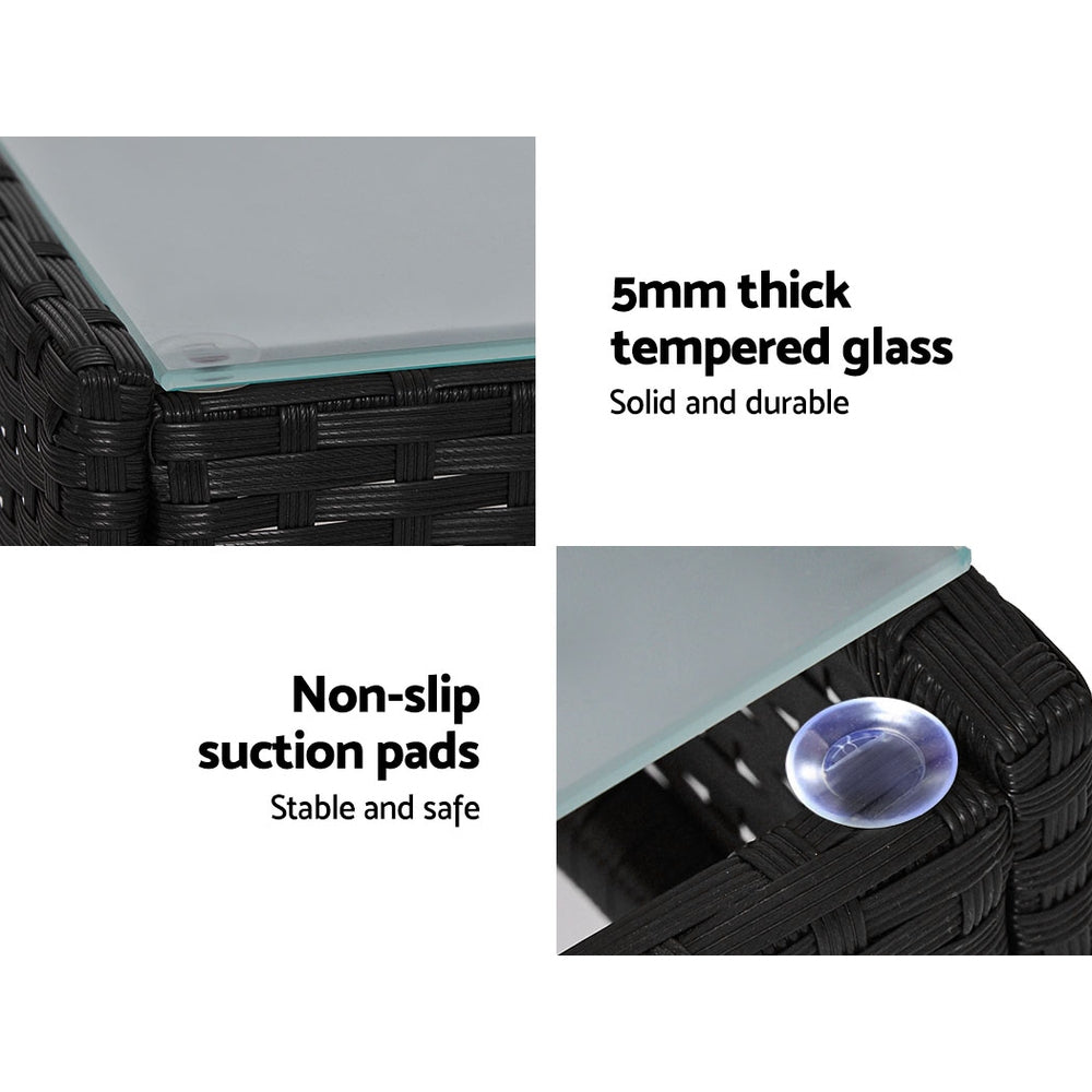 Read moreMeticulously crafted, our Gardeon 4-piece Rattan Outdoor Set comprises two armchairs, a two-seater and a matching table for a beautiful integrated look. Its presence will definitely add panache and style to your deck, patio or even living room. Made of eco-friendly PE wicker and a sturdy steel frame, this set is designed to last through all weather and the test of time. The 5mm thick tempered glass top with non-slip suction pads for the table also ensures strong and safe use with total peace of mind. Not least, the cushion covers are removable and washable to maintain their pristine appearance. There is even a bonus storage cover included for you to protect the set from sun and rain when not in use, so that you can keep enjoying your garden parties for many years to come.