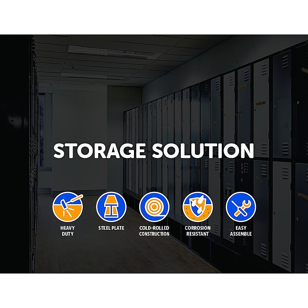 The locker is constructed with solid cold-rolled steel plate for sturdiness and durability and comes with a 4-digit combination lock for worry-free storage.. The steel is also powder-coated to resist corrosion. The locker measures 180 x 38 x 45cm, and the maximum recommended weight capacity is approximately 30kg per locker. There are spaces designated for labels to help identify lockers, and air vents are built-in to assure sufficient ventilation.