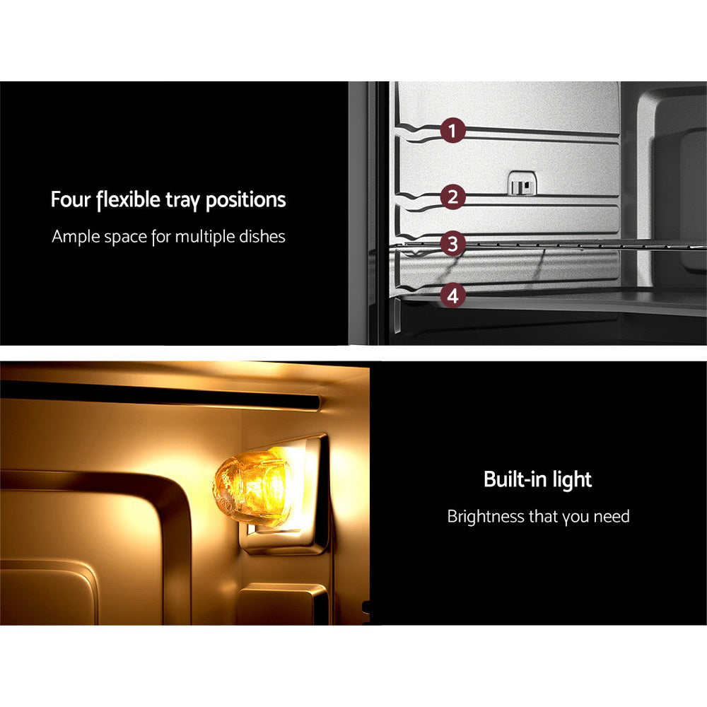 Read moreNeed a multi-functional oven that you can take anywhere? Or do you need a solution for a home without an existing oven? Look no further than the Devanti Convection Oven. Portable and easy to use, the 60L capacity oven can bake, grill and roast to create your favourite recipes with minimum hassle. The oven is well insulated and has a cool-touch handle to always keep heat and radiation at bay for comfortable cooking. It features a rotisserie option for even cooking, 4 flexible tray positions and your choice of heating element options for precise cooking control every time. With its tempered glass door and built-in light, you can always monitor the progress of your cooking and adjust the temperature as needed. It also has a 60-minute timer with an alarm to help you time your cooking to perfection. Not least, the oven also comes with a host of bonus accessories that include a non-stick baking tray, wire rack, tray handle, rotisserie fork and rack, so you'll have everything you need to start cooking pronto!