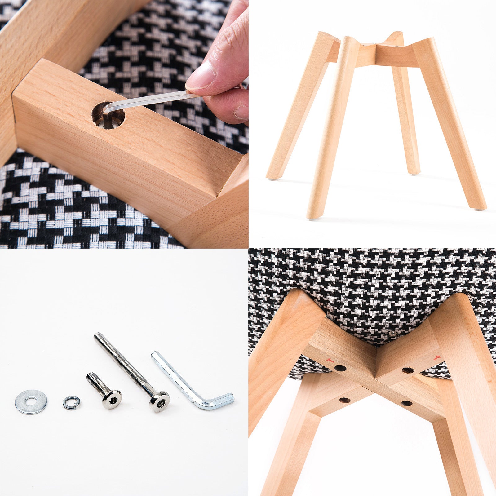 The chair seat is made of high-quality fabric with an extra fabric padded cushion, providing maximum durability and comfort without sacrificing its original aesthetic. Besides, the beech wooden legs will add extra strength to the chair, giving it an extra stability.