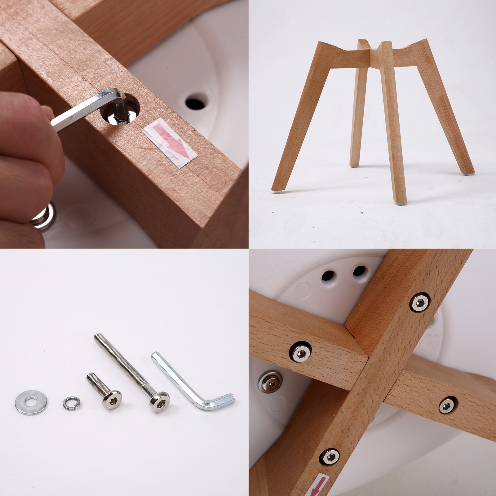 The chair seat is made of high-quality polypropylene plastic with an extra PU leather padded cushion, providing maximum durability and comfort without sacrificing its original aesthetic design. Besides, the beech wooden legs will add extra strength to the chair, giving it an extra stability.