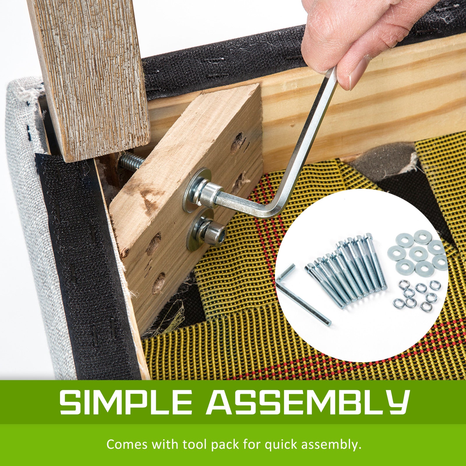 Upholstery Fabric: High-quality linen fabric with brass studs