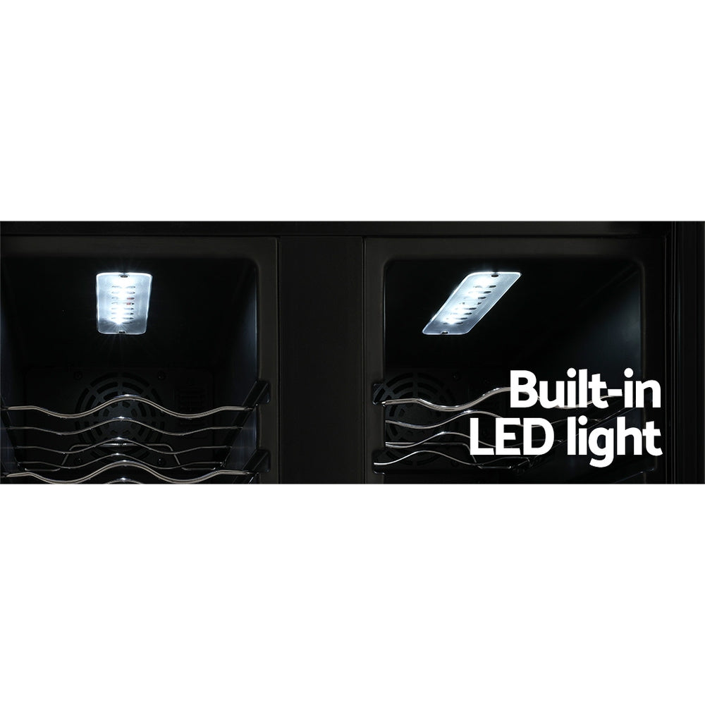 Read moreNeed a reliable way to store your wine collection? Look no further than our Devanti Wine Cooler. Utilising the latest high-precision compressor cooling technology, our wine cooler ensures your favourite vintages are well kept at their recommended temperatures with its circulated cool air. The cooler has a dual zone system with two separate temperature-controlled zones, ensuring perfect cooling temperatures for both white and red wines. The temperature can be set between 5°C and 13°C for the upper zone (which is suitable for dry white and sparkling wines), and between 12°C and 18°C for the lower zone (which is suitable for red wines). The digital control panel makes for easy temperature adjustments while the built-in LED lights help you to see your wines in the best light. The stylish design stores up to 24 bottles of wine in a neat and tidy chrome shelving system. Better still, the double-glazed glass door is UV-resistant and provides excellent insulation. The ensemble works quietly and efficiently and has a built-in lock for total peace of mind. Suitable for both home and commercial use. Treat your vintage collection with the care it deserves - invest in a Devanti Wine Cooler today.